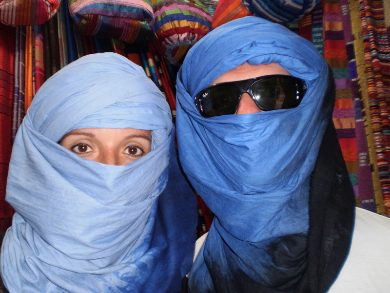 Hier bin in inkognito in Marokko unterwegs – natürlich nur als Schutz vor einem Sandsturm bei unserer Kamelsafari.